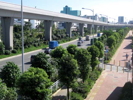 如今,開車行進在這條道路上,干凈整潔的路面、開闊通透的視野、清新自然的景觀,給人帶來閑適、愜意的感覺。“以人為本,尊重自然”的綠化理念,體現在景觀中的每個細節;自然環境與城市環境的密切結合,使高架橋的道路通行功能與橋下中央綠化帶的生態功能有機融合。整條道路,不僅體顯出深圳這個濱海大都市獨有的景觀特色,更彰顯出這個城市的生機活力與熱情奔放。