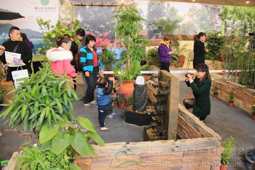22日上午,浙江(中國)花木城的展廳里人潮涌動,自然的濕地景觀,古樸的庭院,美輪美奐的花境園,超大的“會呼吸”的綠墻……風格迥異的情景展示讓人目不暇接。而在展區的西北角,是一個綜合型展區:一排排透明的玻璃瓶里展示著研發中心的組培苗;整齊擺放的穴盤里是生產中心的扦插苗;后面的是運營中心造型優美的組合盆栽、園藝飾品、盆器等;中間的庭院展示區,低矮的墻角花壇里,一蓬紅艷艷的杜鵑,向人們吐露著春的美麗,生動的流水點綴一旁,引得大人和孩子爭相上前拍照;最里面一個木平臺上擺放著一套戶外家居,既是采供中心人員的洽談區,也是景觀的一部分。這,就是杭州市園林綠化工程有限公司的展區。
