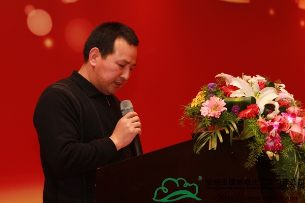 表彰儀式結(jié)束后,董事長吳光洪發(fā)表了新年致詞。吳董首先對各位領(lǐng)導(dǎo)和嘉賓的到來表示了熱烈歡迎;然后與大家共同回望了企業(yè)2011年所取得的成就,并對2012年的發(fā)展進行了規(guī)劃和展望,他感謝大家對杭州園林一路的支持與關(guān)注,希望未來仍能與大家一起攜手前行;最后,吳董舉起手中的酒杯,與大家一起為新的一年干杯,并宣布晚宴正式開始。