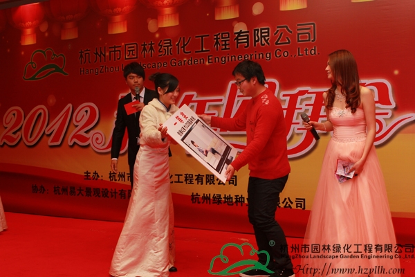隨著晚宴的開始,精彩的節(jié)目表演也拉開了序幕。一曲熱情激昂的鼓樂《中國龍》,營造出了龍年吉祥喜慶的節(jié)日氛圍,隨后,唯美的獨舞表演、深情的情歌對唱、優(yōu)美的葫蘆絲吹唱,功夫茶道、詩詞朗誦、搞笑小品……一個又一個精彩節(jié)目,將現(xiàn)場的氣氛一次次推向高潮。而期間最令人期待的,是現(xiàn)場的抽獎環(huán)節(jié),一等獎的42寸高清液晶電視機、二等獎的皇冠寢室羽絨被、三等獎的博洋家紡四件套,豐厚的獎品讓每個人都期待著幸運的降臨,隨著一組組數(shù)字的公布,抽到獎的人一個個歡喜雀躍,興高采烈地領(lǐng)走了獎品,現(xiàn)場成為一片歡樂的海洋。最后,投標(biāo)中心的一曲《明天會更好》,傳達(dá)了所有人對2012年的美好期待和祝愿,也預(yù)示著杭州市園林綠化工程有限公司2012年新春團拜會的圓滿成功!