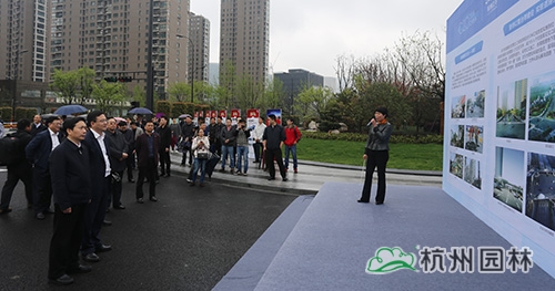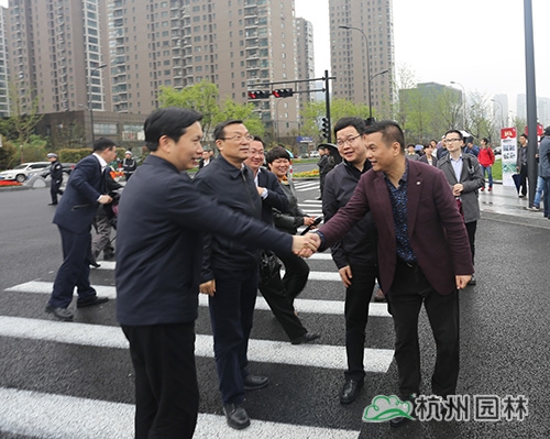 4月7日上午,浙江省委常委、杭州市委書記趙一德,杭州市委副書記、市長張鴻銘等市四套班子帶領各區縣及相關部門負責人,冒雨檢查新塘路綜合整治工程情況。杭州市園林綠化股份有限公司總裁張炎良陪同前往。