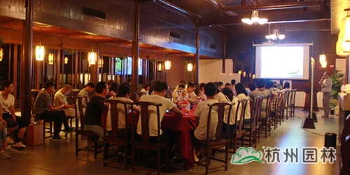為避開白天的炎炎酷暑,不影響各崗位人員的業務工作,8月1日晚,杭州畫境種業有限公司在青山湖花園中心青風居內組織了一場容器苗生產技術的培訓活動,畫境種業總經理黃民強、副總經理趙斌及來自各部門的40余人參加了培訓。