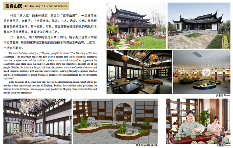通過一幅幅效果圖與實景圖的對比,不難發現,實景圖與設計圖并沒有太大區別,實景圖最大限度表現了設計思想和精髓,實現了設計圖紙的完美落地。細心、用心、創新,深化設計團隊助力浙江園展開了一幅新時代的“富春山居圖”,在2019北京世園會上綻放出奪目光彩。這,就是浙江園的深化設計團隊;這,就是杭園股份的設計力量。