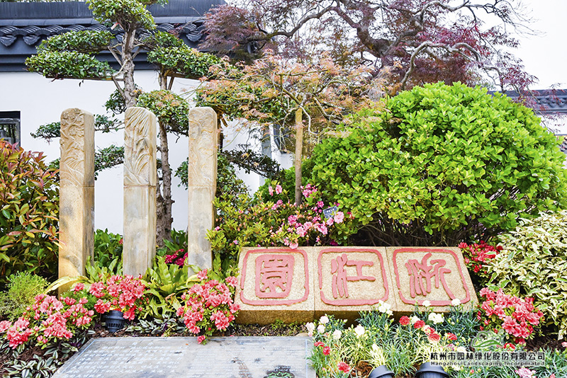 位于浙江園主入口西側的景觀小品“浙江印”,提煉自石鼓篆書第一人、西泠印社首任社長吳昌碩先生的書法作品,三方極具浙派篆刻風格的印章上,“浙江園”三個字,干凈、利落,古樸、大氣。這幅美景的背后,是深化設計團隊數次往返西泠印社,從無數的篆刻名家作品中挑選、比對,決定采用最能代表浙江篆刻藝術的吳昌碩先生字體,從中找出“浙”、“江”、“園”三個字,在設計圖中反復比對,調整位置、大小,最終確定下來。