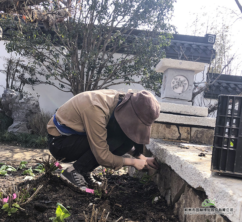 施工過程中往往因為地形、管道等現場不確定因素影響,深化設計師需要多次進行現場優化調整,盡量使施工達到預想效果。除此之外,雕塑定型、材料選樣、植物配置、文字刻制、創意小品制作、燈具選樣等工作,他們也都親自負責或者參與其中。