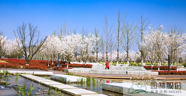 滸溪岸線較長,為營造豐富多變的四季風景,植物配置采用水杉林、色葉林、混交林、竹林、濕生水生植物、花坡等群落反復出現,突出整體的節奏感。每個段落里又穿插一些其它植物作為點綴,在部分區域通過混交、純林、群植的方式營造自然景觀氛圍,整個區域的景觀統一中又富有變化。一路前行,步移景異;一年四季,景隨季變。