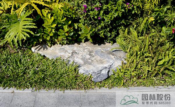 匠心體現在細節,置石、園路的邊線處理,植物的倒邊曲線種植等,均做得流暢自然。