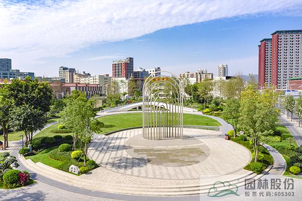 時尚現代的雕塑,開闊大氣的廣場,平整翠綠的草坪,展現出充滿創新與活力的城市景觀新風貌。