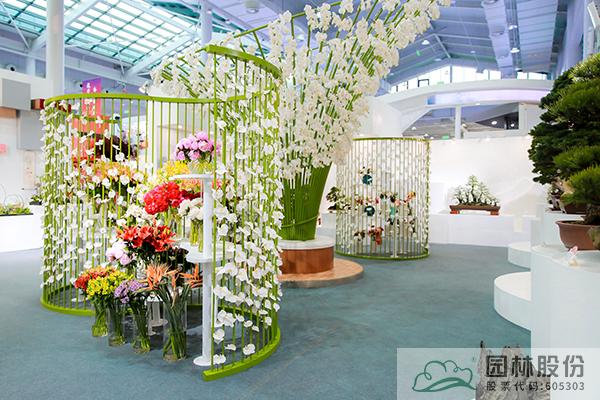 走進館內(nèi),各種浙江特色新優(yōu)園林園藝植物產(chǎn)品、花藝作品、盆景作品等,讓人忍不住駐足停留。最引人注目的,則是以一朵朵白色的蝴蝶蘭花朵與仿竹構(gòu)筑物營造的立體景觀,結(jié)合蒼翠欲滴的竹林背景和浙派山水盆景,營造出綠意盎然、生機無限的風(fēng)景畫卷。寓意浙江是“綠水青山就是金山銀山”理論的發(fā)源地,表現(xiàn)浙江始終踐行“綠水青山就是金山銀山”的理念、大力推進生態(tài)文明建設(shè)取得的巨大成就。