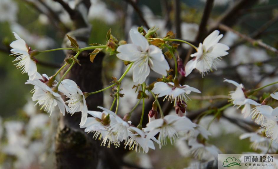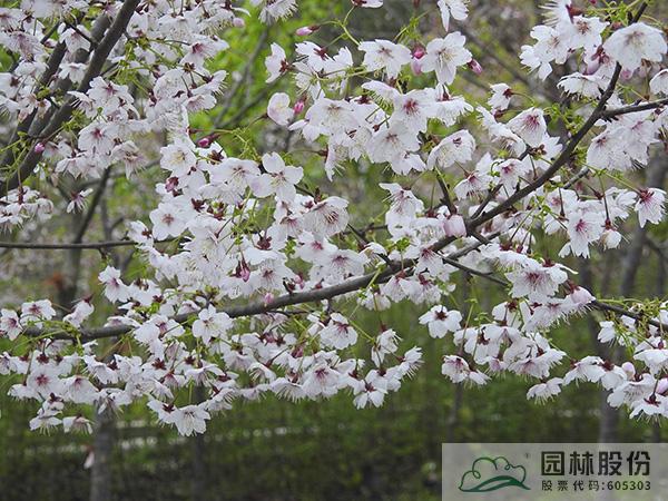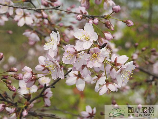 這些櫻花品種花色豐富,特色各異,其中,‘纖秀’為落葉小喬木,樹皮灰白色,小枝灰棕色;葉片卵狀橢圓形;花先葉開放,總狀傘形花序,每花序有花3~5朵,稀2朵;花梗長12~17mm,綠色;花瓣白色,或花瓣邊緣粉色,中下部白色,花徑2.5~2.8cm,核果紅色,成熟后直徑約1cm。花期2~3月。