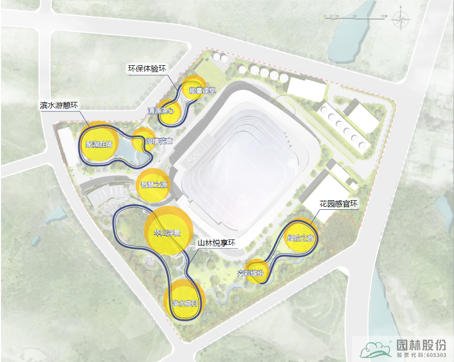 四環:環保體驗環、濱水游憩環、山林悅享環、花園感官環;