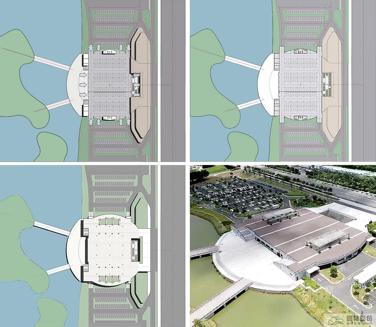 上廣場下車庫、人車分流、輔道和游覽環(huán)路 |