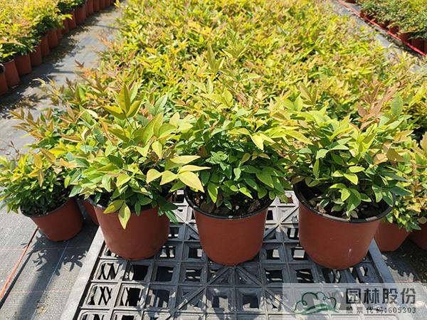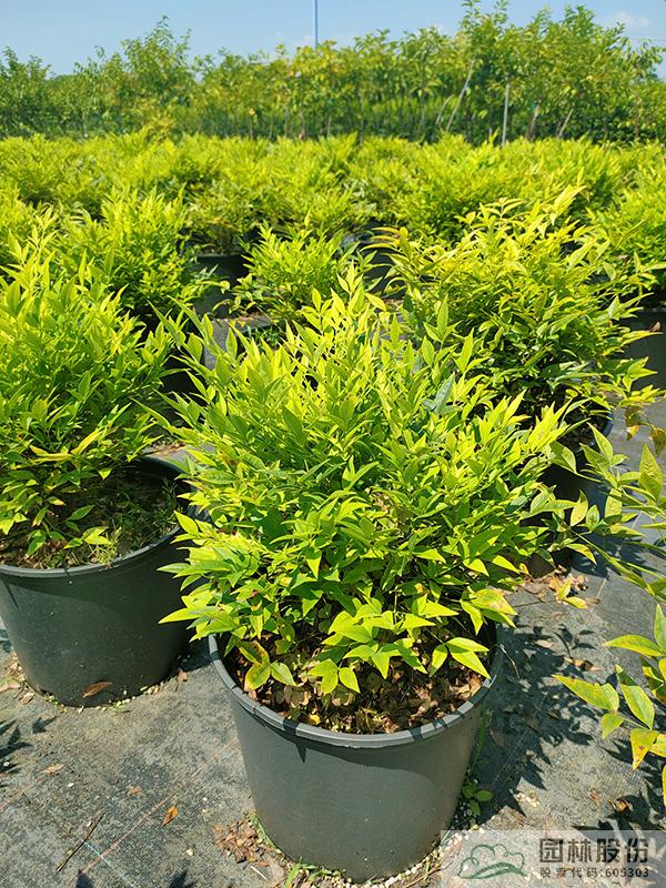 相較于其他南天竹品種,檸檬黃南天竹是少見的金黃色系品種,四季均能保持一個相當亮眼的狀態。低矮飽滿的冠型與密集斜展的金葉,明顯區別于其他金色系植物品種。
