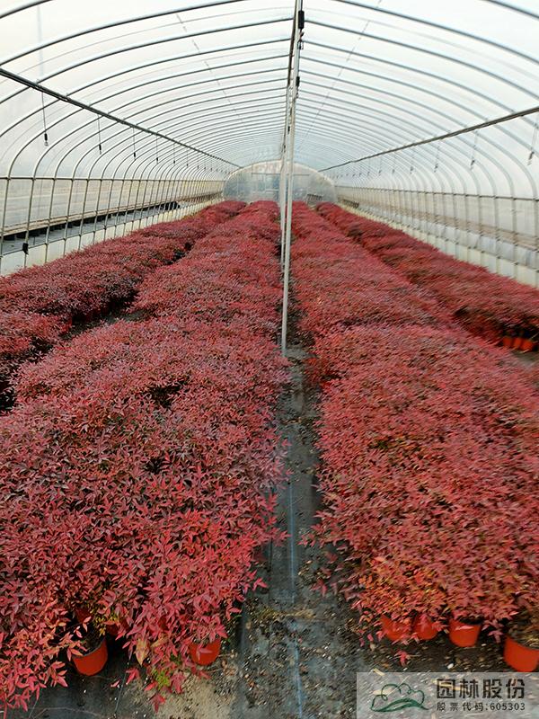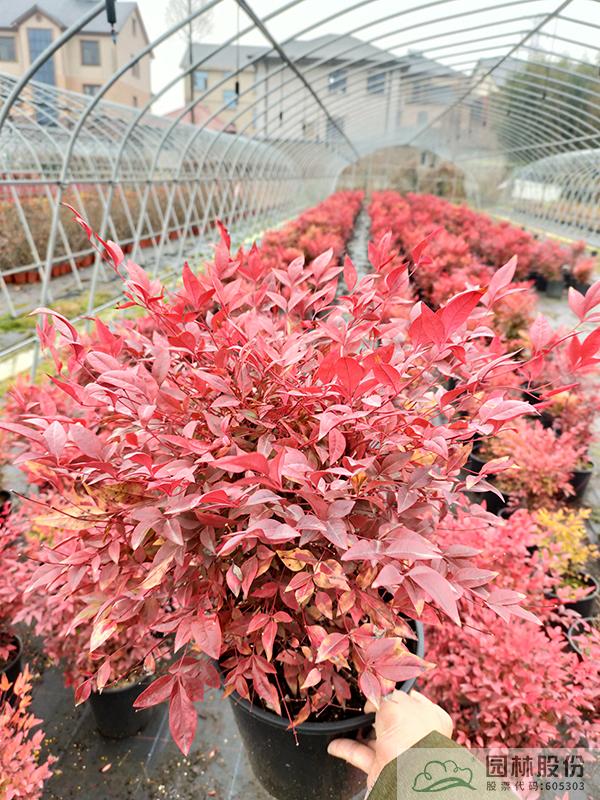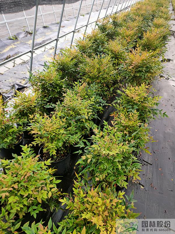【灣流南天竹】矮叢灌木,株冠緊湊且兩側對稱,株高冠幅均可達1m,直立性強,葉姿斜展向上;葉色季相變化豐富,春季新葉黃銅色,成熟葉黃綠色,入夏后逐漸轉變為葉面上層黃綠色,下層綠色,入冬后新葉變鮮紅色,老葉則變為暗紅色;偶見花果。