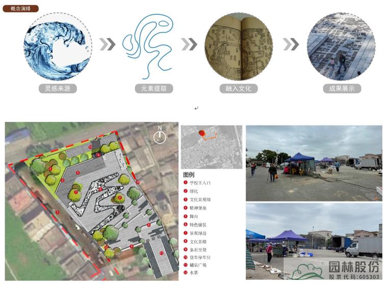 入口休閑廣場概念演繹設(shè)計說明:現(xiàn)狀場地主要為一片空地,由于南面是菜場,因此該場地在功能性上主要有貨車卸貨的功能,考慮村莊內(nèi)可能舉辦大型祭祀活動或者紅白喜事,需要有大空間,所以在設(shè)計中留出了大片場地。因沿海城市,所以提取了海浪元素,結(jié)合當?shù)貧v史文化及村落肌理,做出如圖設(shè)計。