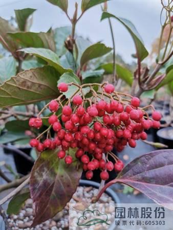 莢蒾屬植物既可觀花又可觀果,且絕大部分種類都是可以觀果的,只是被開發應用的寥寥無幾,故仍有許多優良的觀果種類有待開發,如皺葉莢蒾的一些雜交品種及很多本土原種,像宜昌莢蒾、莢蒾、傘房莢蒾等等,均具有良好的開發潛力。后期,園林股份將繼續加大莢蒾屬植物的開發力度,力爭更多的莢蒾產品在美麗中國建設中大放異彩。