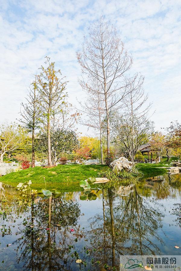 為保證園內水質干凈清澈,水系采用了兩套循環系統。一套是內循環,將湖里的水抽到山頂上,沿溪流而下,中間逐級補水;由于湖的體量較大,湖內單獨設一套循環系統,保證水體流動,同時在湖里放養了螺絲、雜魚,周邊種植水生植物,確保水質效果。)