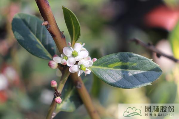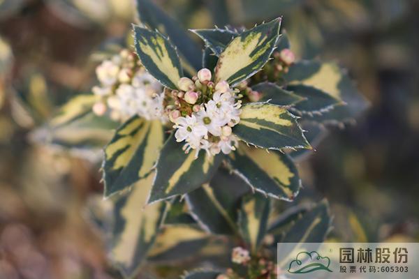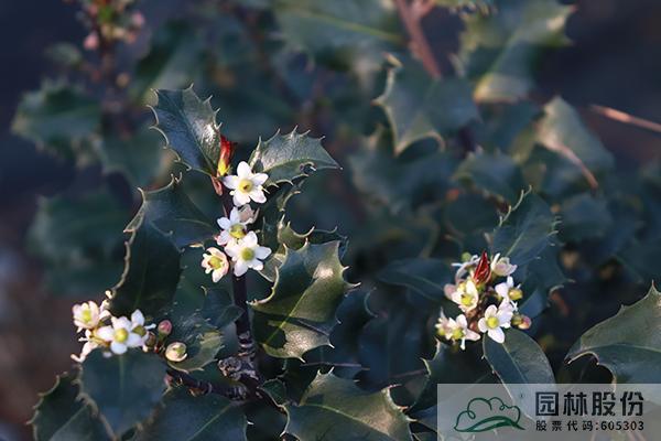 其中,彩葉冬青更是其中的佼佼者。除了果實可供觀賞外,它們還擁有黃色葉、藍綠色葉和銀邊葉等彩色葉片。葉形變異也是相當(dāng)豐富,具四角狀,橢圓形,倒卵形等多種形狀;有些品種具有刺狀葉片,而有些則是光滑的葉片;有些品種葉緣還具有波浪狀的起伏。四季景觀分明,在春季,它們的莖腋間會簇生出一朵朵清新可愛的小花;而在當(dāng)年生的枝條上,則會抽出亮麗的嫩葉。到了秋季,隨著氣溫的驟降,葉色會變得更加地明艷;冬季的時候,在雌性的植株枝條上,則會掛滿累累的果實。這些不同的形態(tài)和色彩變化,使得彩葉冬青在不同的時間和空間中呈現(xiàn)出不同的姿態(tài)、色彩與意境,從而提升了冬青品種的觀賞價值,成為園林景觀中重要的觀葉植物。